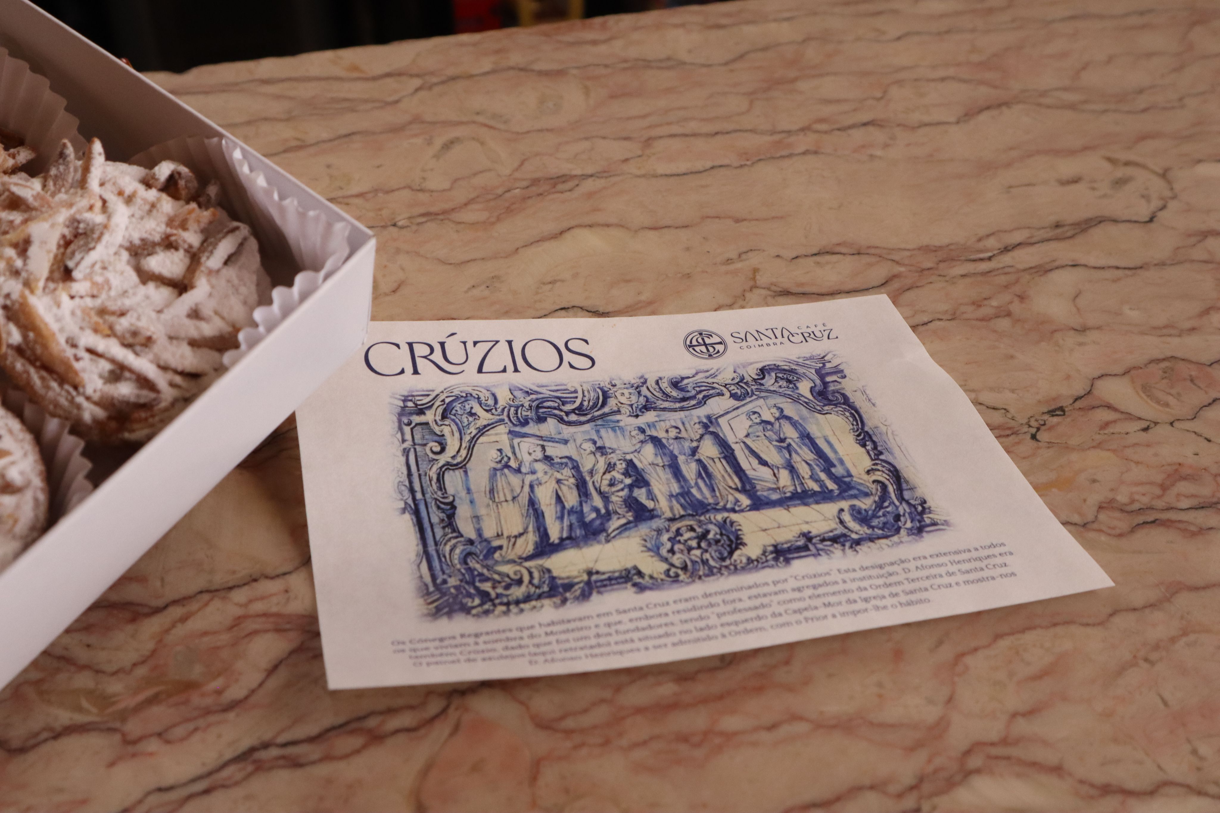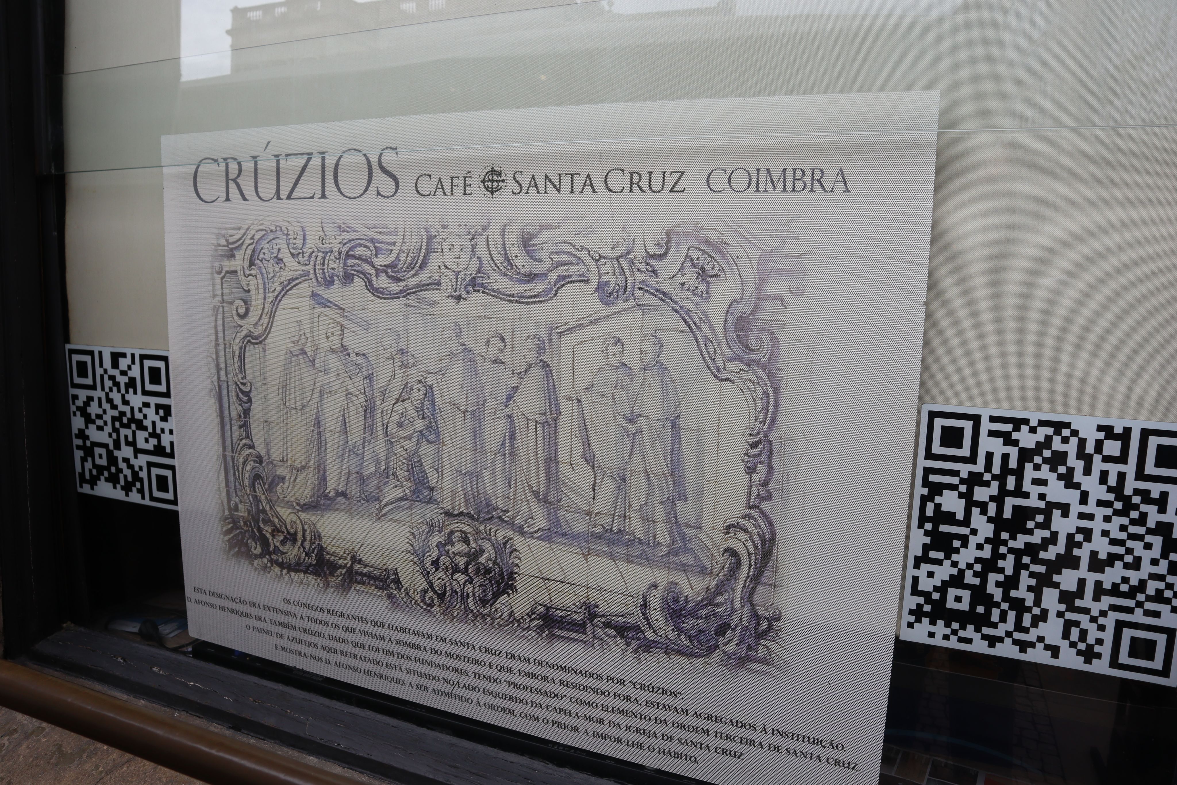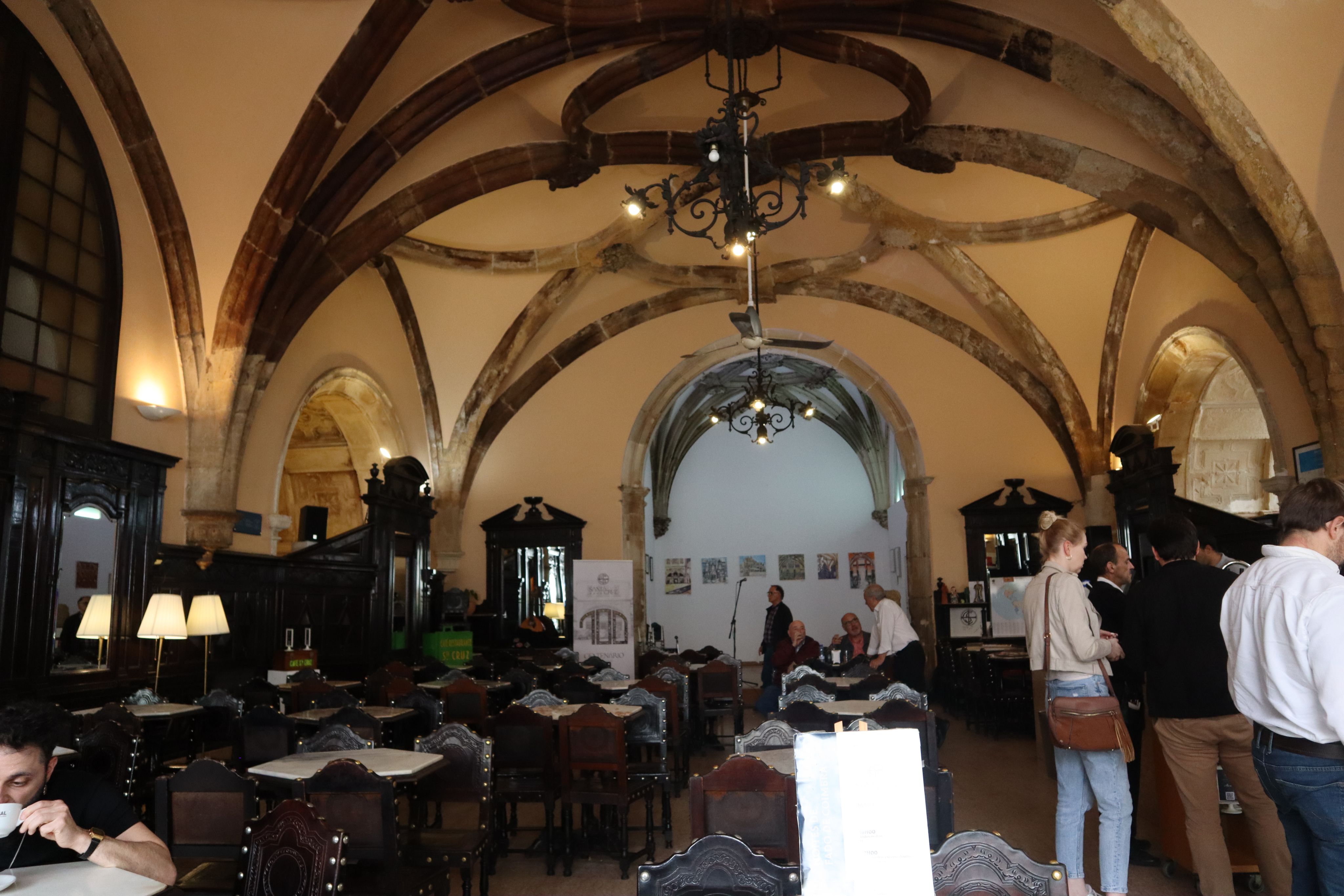 Por baixo da luz que se derrama pelos vitrais do centenário Café Santa Cruz, num ambiente místico de memória e reencontro, bebe-se um café, come-se um crúzio e, ao som de Fado de Coimbra, revive-se e vive-se a história da cidade. Um espaço que já teve várias funções e designações, hoje permanece, passados 100 anos, um lugar de recuperação histórica e cultural, de sociabilidade e partilha. O Café Santa Cruz está instalado no Mosteiro de Santa Cruz, fundado em 1131, pela Ordem dos Cónegos Regrantes de Santo Agostinho, com o apoio de D. Afonso Henriques e de D. Sancho I, que nela se encontram sepultados. Este é um espaço emblemático da cidade, reconhecido, em 2003, como Panteão Nacional.