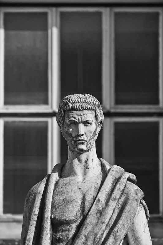 Outro elemento que permite identificar a influência do Estado Novo na arquitetura do Polo 1 são as quatro estátuas clássicas em frente à Faculdade de Letras. Cada uma tem um significado.