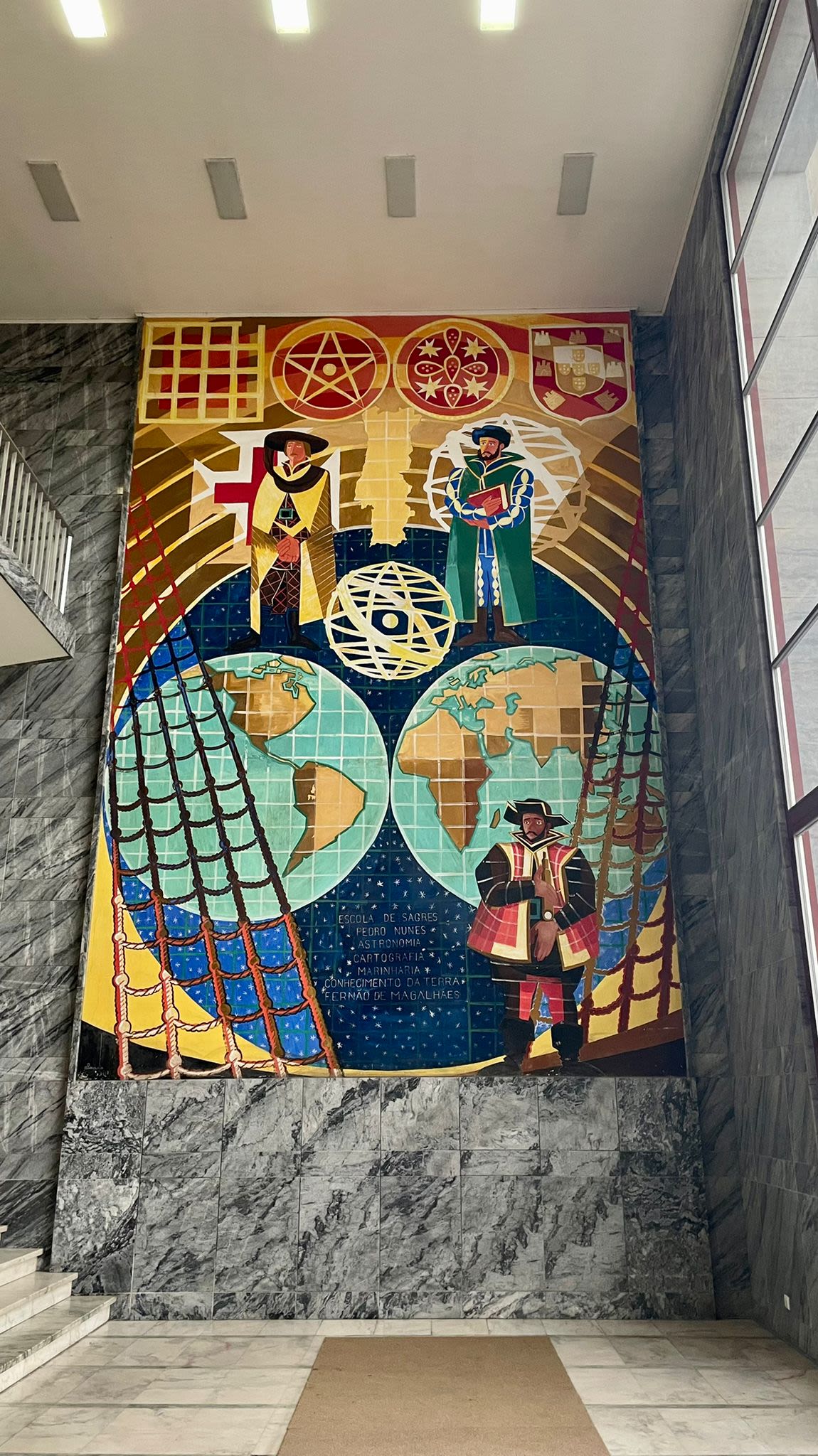 Na Faculdade de Letras, de um lado, observam-se figuras relativas à memória literária da história de Portugal.