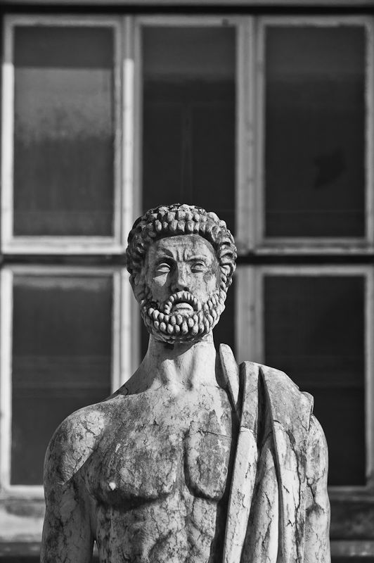 A Eloquência, simbolizada por Demóstenes, um famoso político e orador da Grécia Antiga.